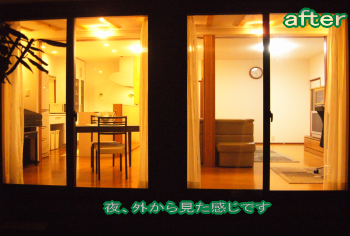 | 外壁は、既存のものと合わせた色調にし、違和感のないように仕上げました。サンルームはリビングからの続きで、そのまま庭へとつながり、広々とした眺めが楽しめます。また太陽光が射し込み洗濯物を干すにも最適です。サンルーム内は夜でも快適に使って頂けるよう壁付けの照明を付けました。お気に入りの場所として活躍しているようです。また、サンルームの出入り口下にはご家族の新しい記念にして頂けるようにと完成日と家族の名前、ビーズを埋め込みました。 |