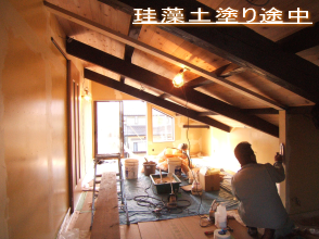 施工前(藤本さんによる珪藻土塗りの途中です。) |